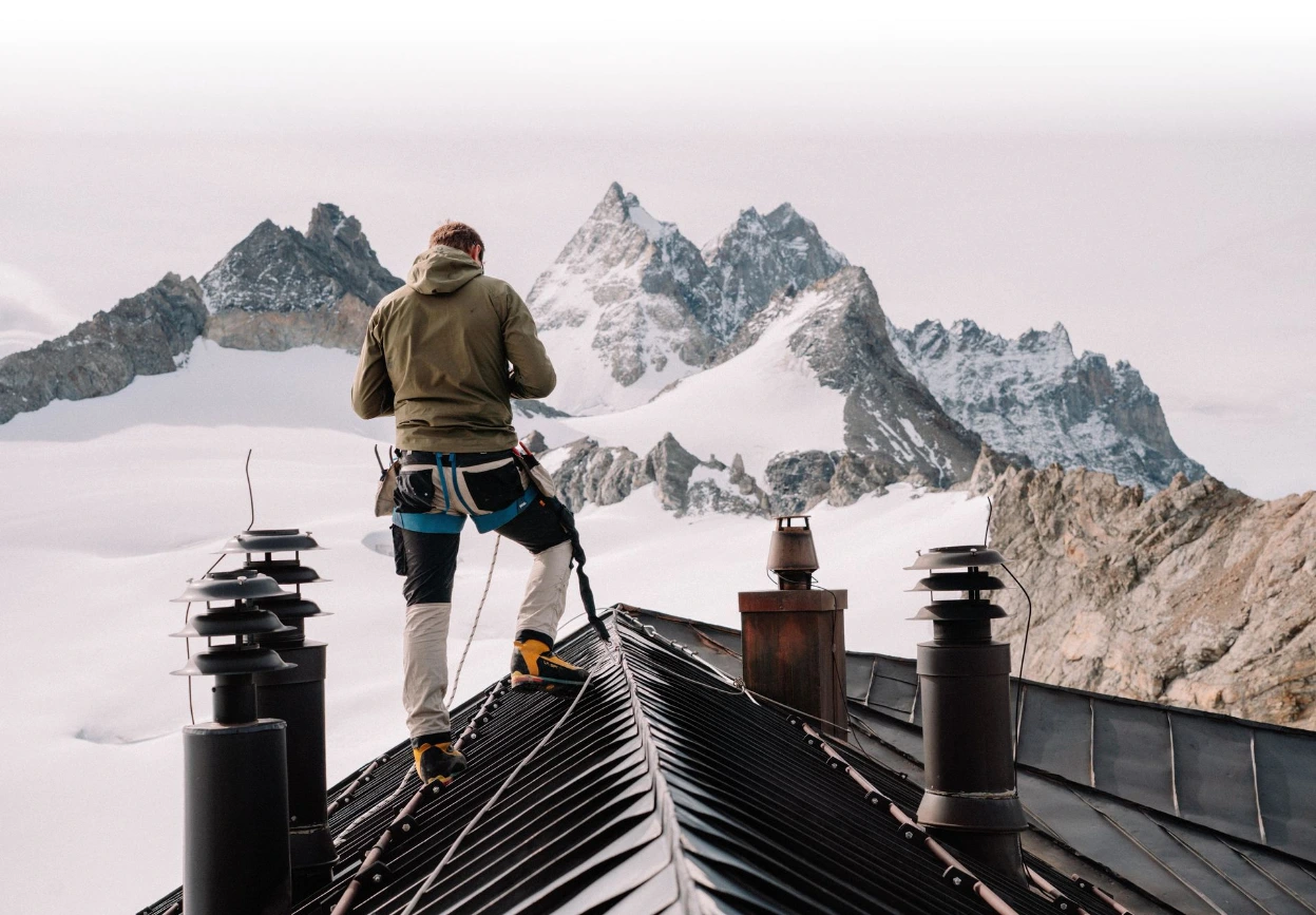 Depuis son royaume entre ciel et terre, le couvreur s'assure que son prochain dorme au sec. Son geste est empreint d'altruisme et de respect pour son art. Il connaît les matériaux nobles et fait tout son possible pour faire le choix le plus esthétique.